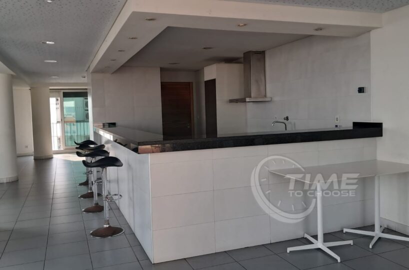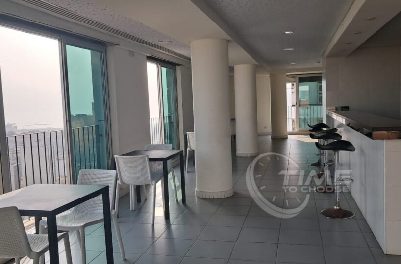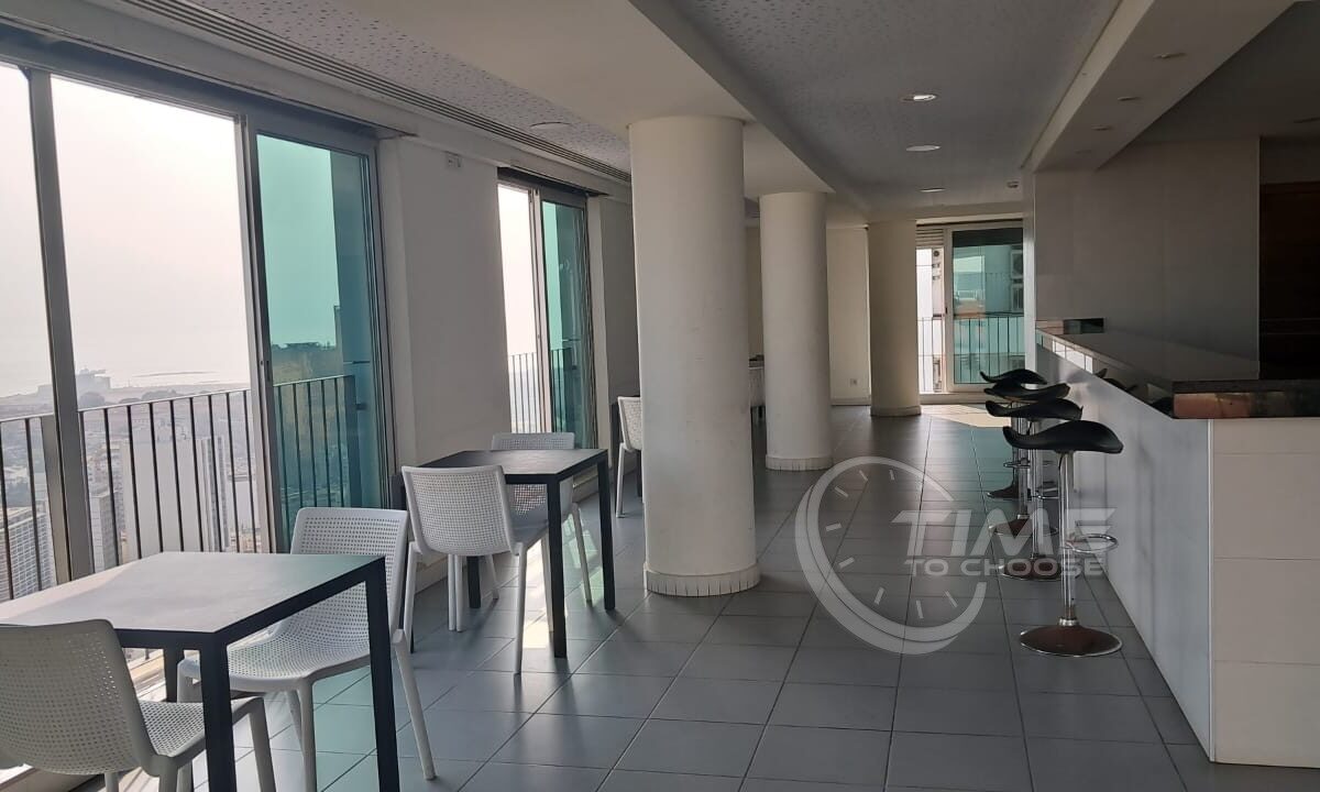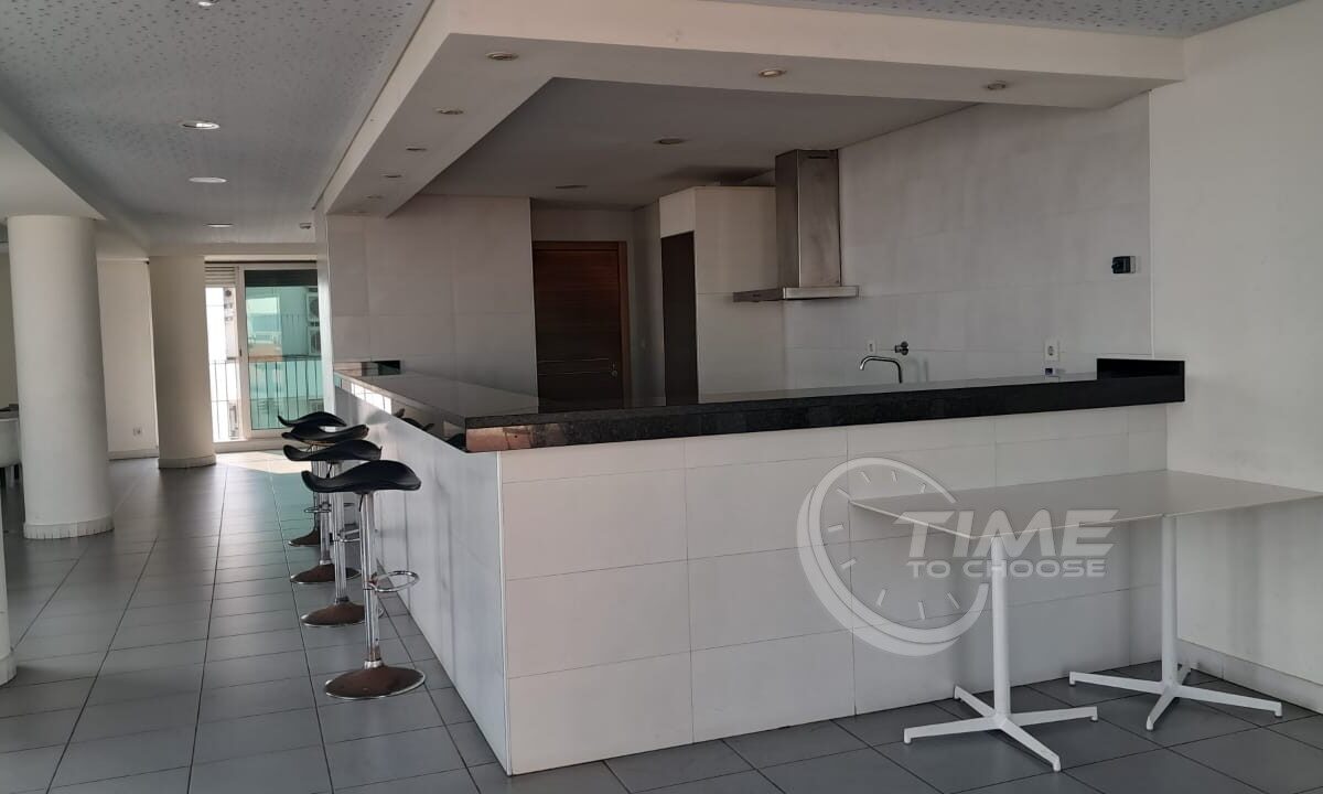 O edifício residencial tem apartamentos T1 e T1+1, e uma área de lazer bastante completa no último piso, com piscina, ginásio, salão de eventos/festas, bar/restaurante e terraço.